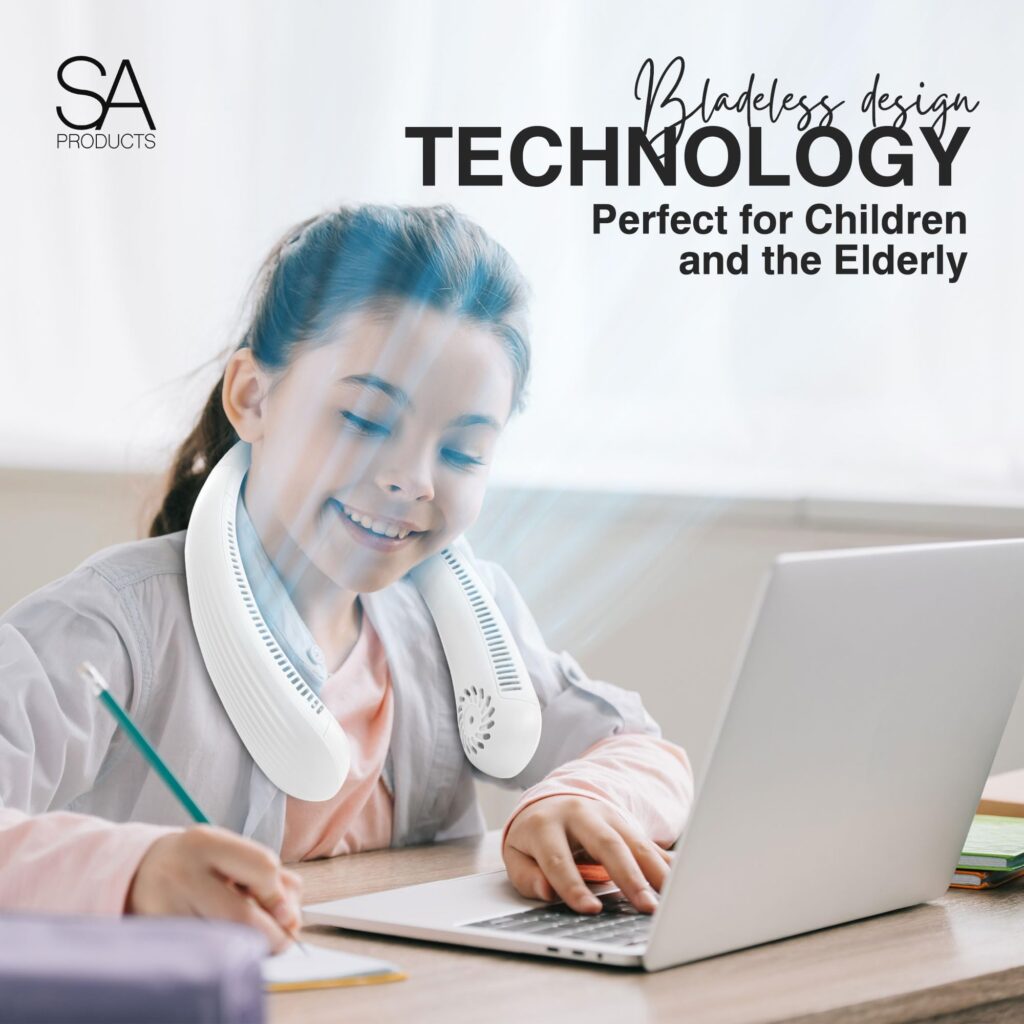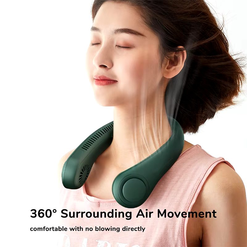 Our Neck fan is designed to fit comfortably on your neck, often with soft silicone or memory foam material for added comfort. It typically feature a flexible or adjustable frame to accommodate different neck sizes.